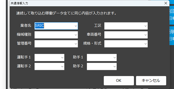 共通情報を入力して『OK』をクリックすると一覧表示されます。